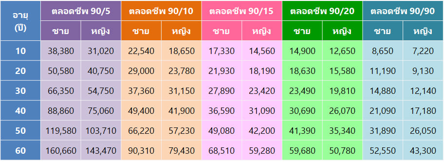แบบตลอดชีพ 90/10, 90/15, 90/20 และ 90/90