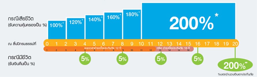 ความคุ้มครองชีวิต เพิ่มขึ้นตามปีกรมธรรม์